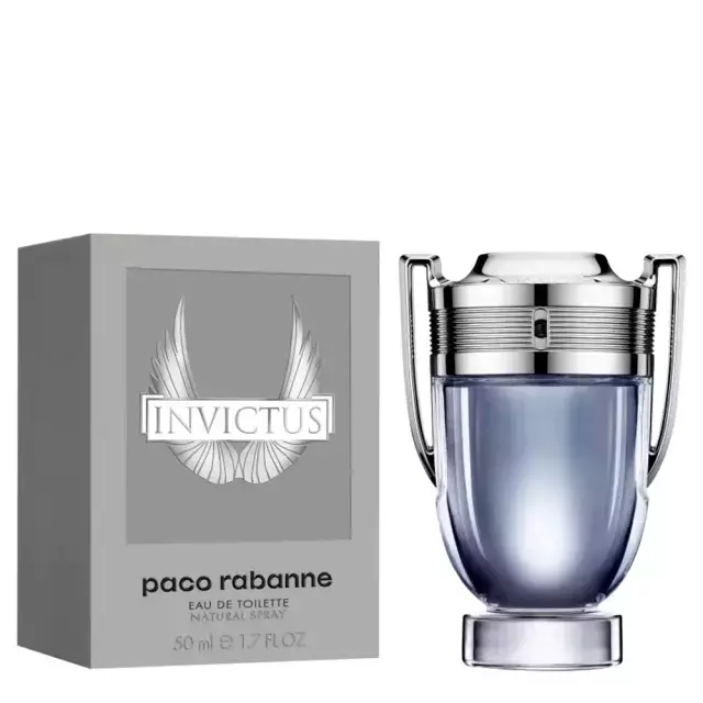 Invictus de Paco Rabanne é um perfume Aquático Amadeirado Masculino. As notas de topo são: Notas Oceânicas, Toranja e Mandarina. As notas de coração são: Folha de Louro e Jasmim. As notas de fundo são: Âmbar Cinzento, Madeira Guaiac, Musgo de Carvalho e Patchouli.